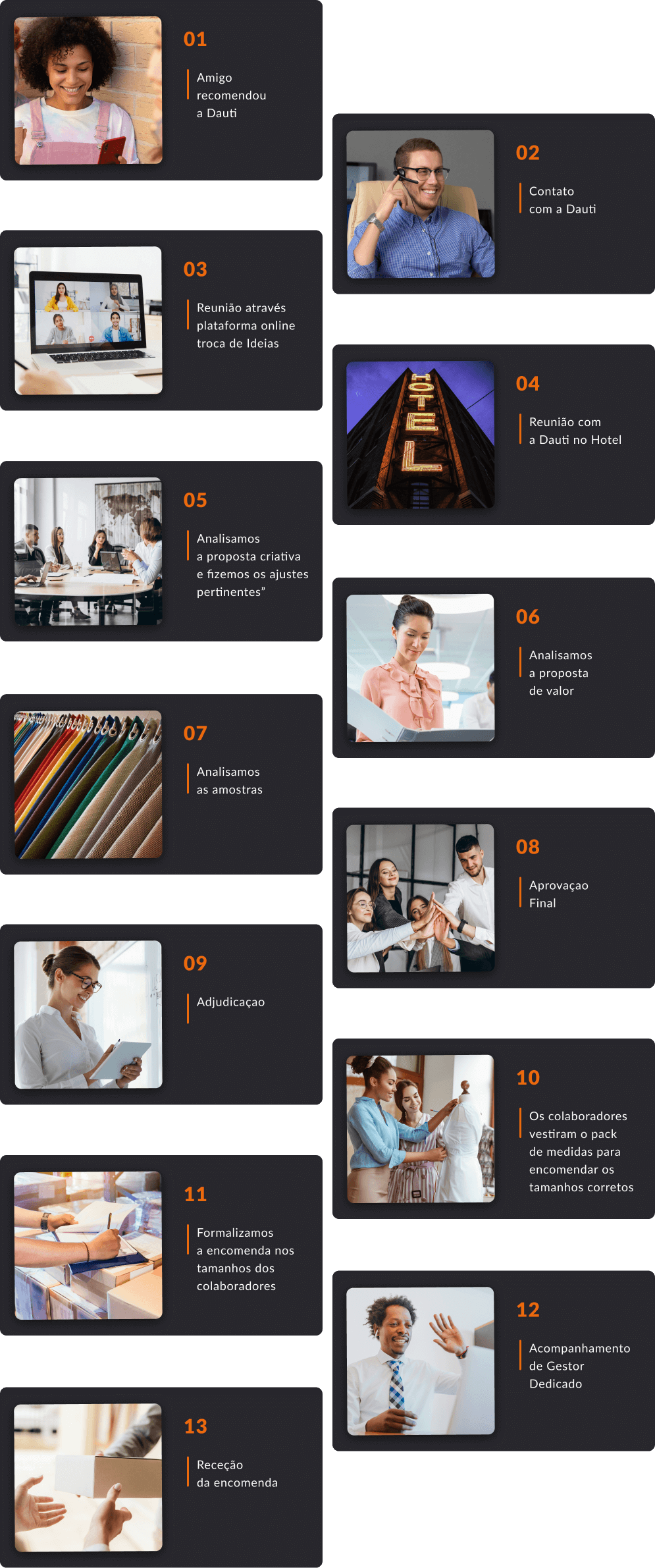 Por recomendação do seu amigo conou-nos o seu projeto e pediu-nos soluções para o fardamento dos colaboradores do seu Hotel. O seu objetivo era uniformizar os